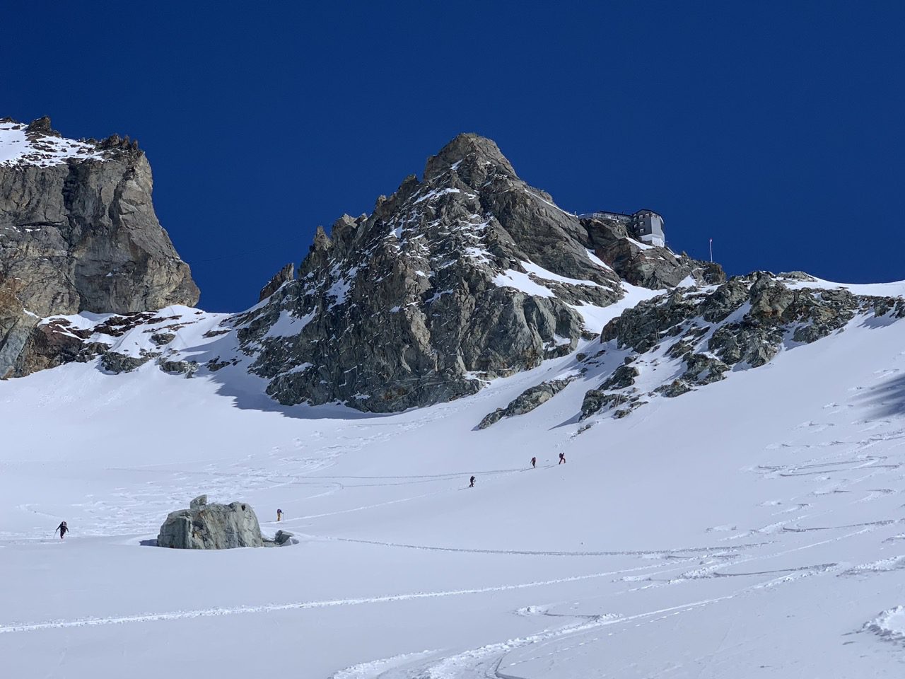 The last day of the Haute Route is arguably the best day of the whole trip! From the Vignettes hut to Zermatt we will travel through heaps of glaciated terrain via Col de l’Eveque at 3377m, Col du Mont Brulee at 3213m and Col de Valpelline at 3568m. We will then ski a long run down the Zmutt Glacier underneath the impressive North Face of the Matterhorn to eventually arrive in Zermatt.